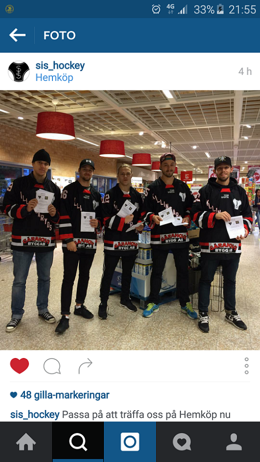 Förlusten mot Valdemarsvik sitter fortfarande i. Killarna i hemmalaget gör än riktigt bra match och är värda poäng i matchen, men tyvärr fungera inte idrott så, utan laget som gör mer mål än motståndarna får poängen med sig. Vi gör kanske säsongens bästa period och äger spelet fullständigt och leder efter första perioden med 2-0, och ledningen borde varit större. I andra gör Valdemarsvik som dom blivit kända för, sätter en hög press både i spelet och på domaren. Tyvärr står domarna inte pall utan Valdemarsvik får perioden igenom köra sena tackling, efterslänga och hetsa från båset. Vi tappar tyvärr vårt spel och bli lite ängsliga vilket för att matchen vänder till ledning 3-4 för Valdemarsvik inför sista perioden. Inför tredje perioden i vi bestämda på att vända matchen och kriga stenhårt för poängen. Men uppförsbacken blir för tung när Valdemarsvik tidigt gör 3-5 och istället kommer känslan av uppgivenhet fram. Vi kriga bra sista perioden rakt igenom utan att de betalar sig, utan Valdemarsvik vinner sista perioden med 0-3 och matchen med totalt 3-7. Som plåster på såren så fick Gsk stryk i Linköping vilket gör att vi ligger kvar på andra plats med tre otroligt viktiga matcher på schemat. Dessa tre blir måste matcher för att kunna fixa andra platsen som ta oss till alltrean. Tyvärr så kan vi också meddela att Filip Lundgren har valt att sluta med hockeyn då han inte får ihop studier och hockeyn. Vi tackar Filip för tiden i SIS och önskar honom all lycka till i framtiden. //coaches